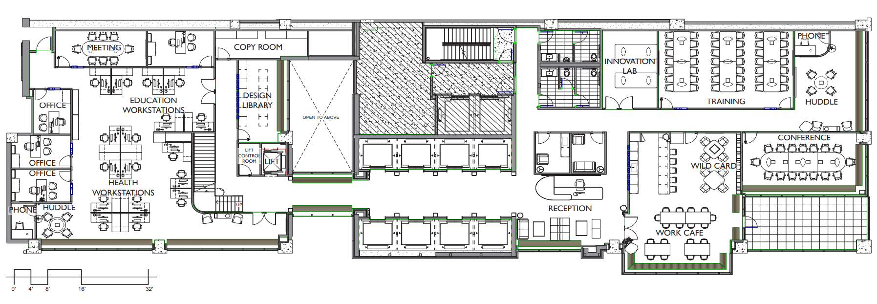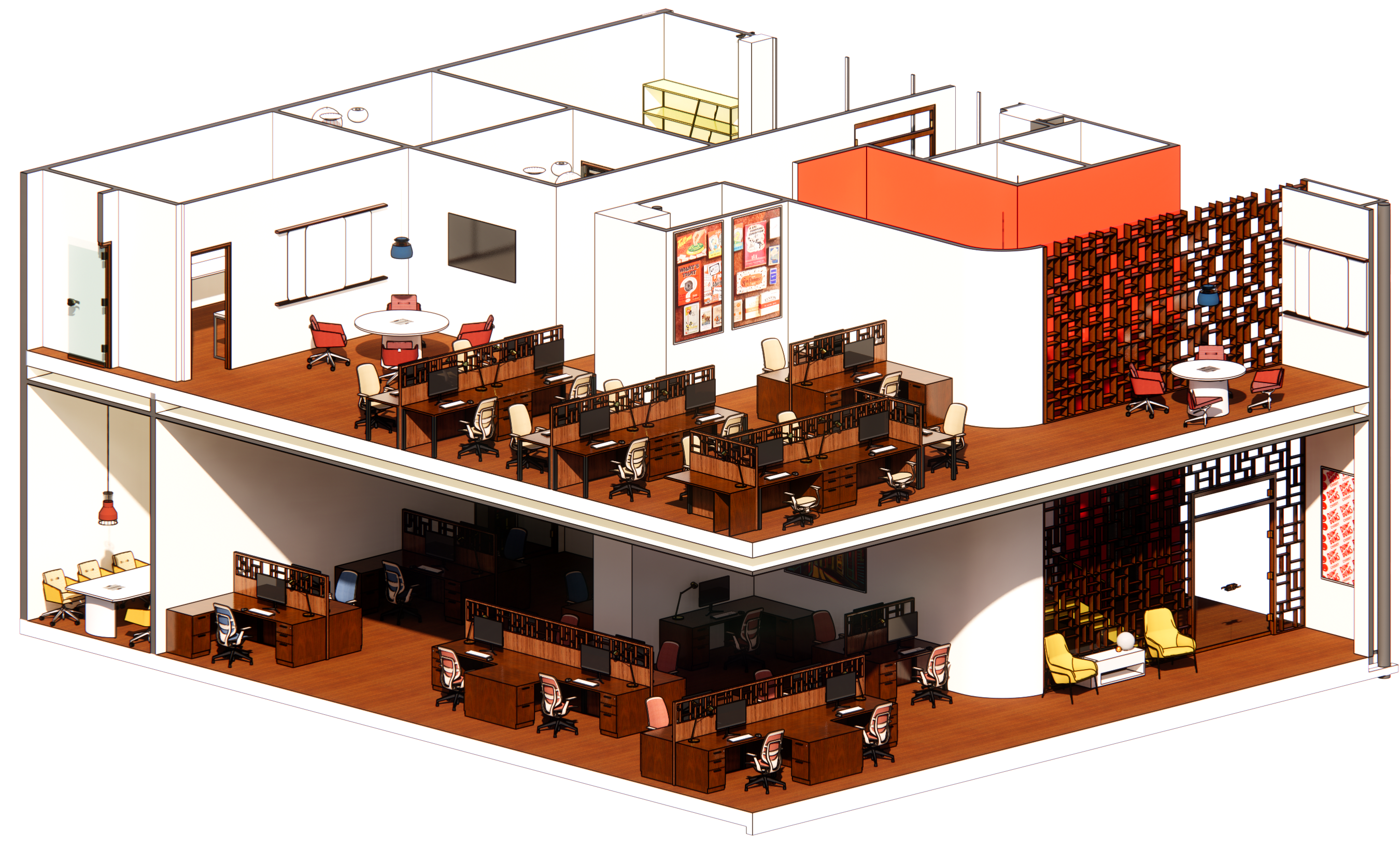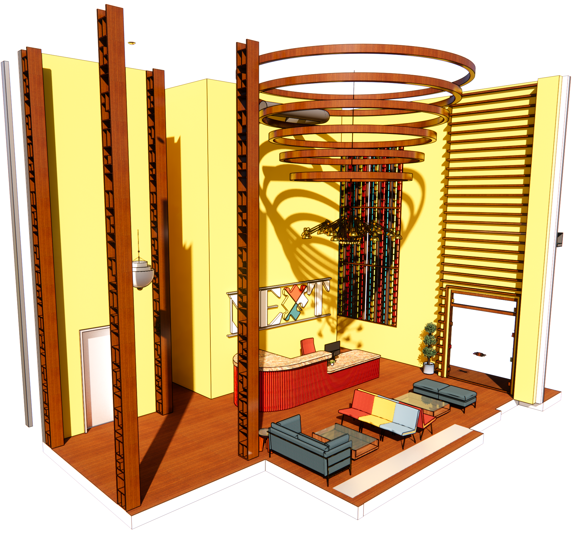 NEXT aims to create a space that is both functional and visually stimulating in order to inspire their employees. The primary colors red, yellow, and blue are used in both bright and darker tones, with creamy whites and wood tones to neutralize the pallette. Using vintage board and card games as inspiration, NEXT will provide a vitalizing and fun enviornment their employees will want to work in.